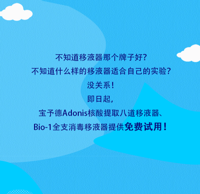 寶予德Bio-1全支消毒移液器、Adonis核酸提取八道移液器提供免費試用!