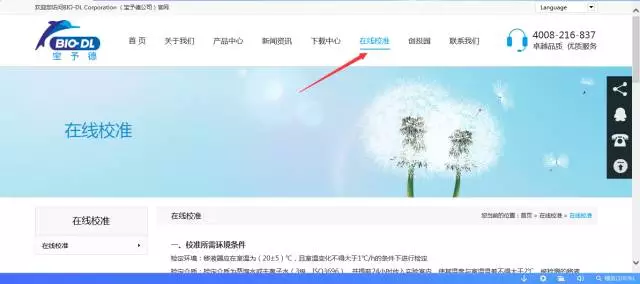 2.點(diǎn)擊下圖紅色箭頭指示的“在線(xiàn)校準”進(jìn)入移液器在線(xiàn)校準服務(wù)。