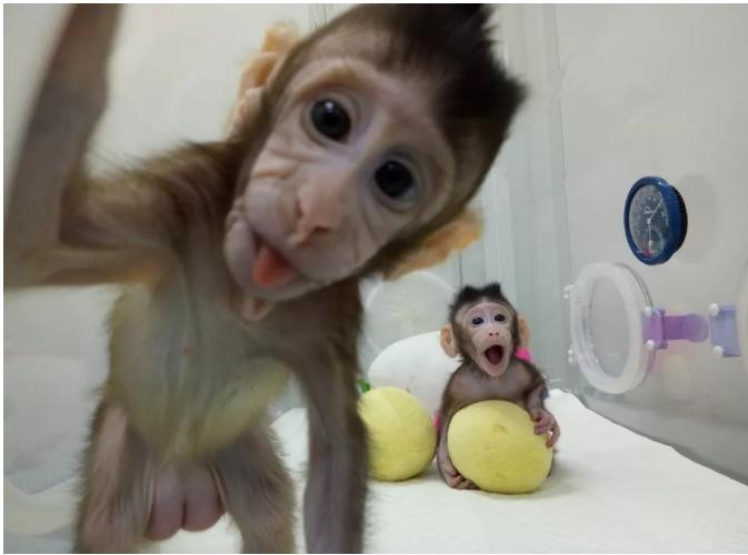 兩只遺傳基因一模一樣的克隆猴起名“中中”和“華華”,雖然個(gè)頭差了一些,但卻長(cháng)得幾乎一模一樣。在成長(cháng)到六個(gè)月之后,“中中”和“華華”就會(huì )被送到猴群之中,觀(guān)察其在群體生活中的狀況。